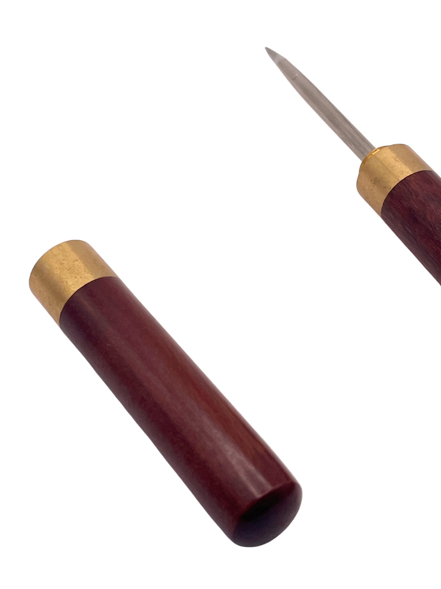 Wooden and brass tea pick for breaking apart puer tea cakes and bricks