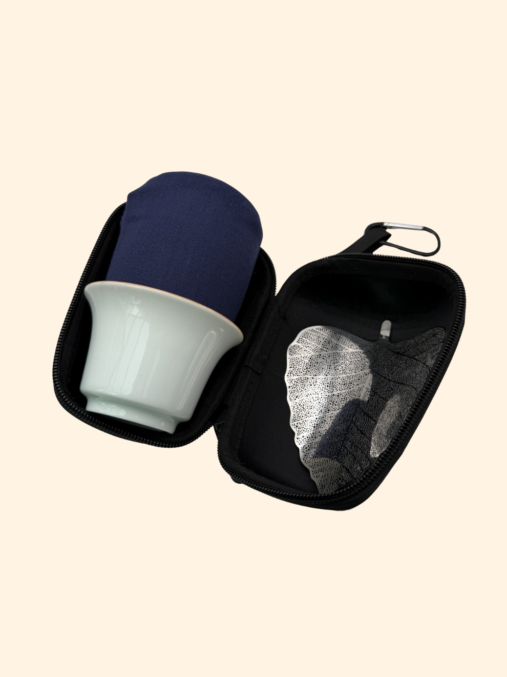 This portable Gaiwan travel set includes a lidded brewing bowl, four matching cups, a glass pitcher and a strainer, all neatly packed in a compact travel case. Lightweight, durable, and beautifully designed, it is perfect for sharing Gong Fu tea on the go!